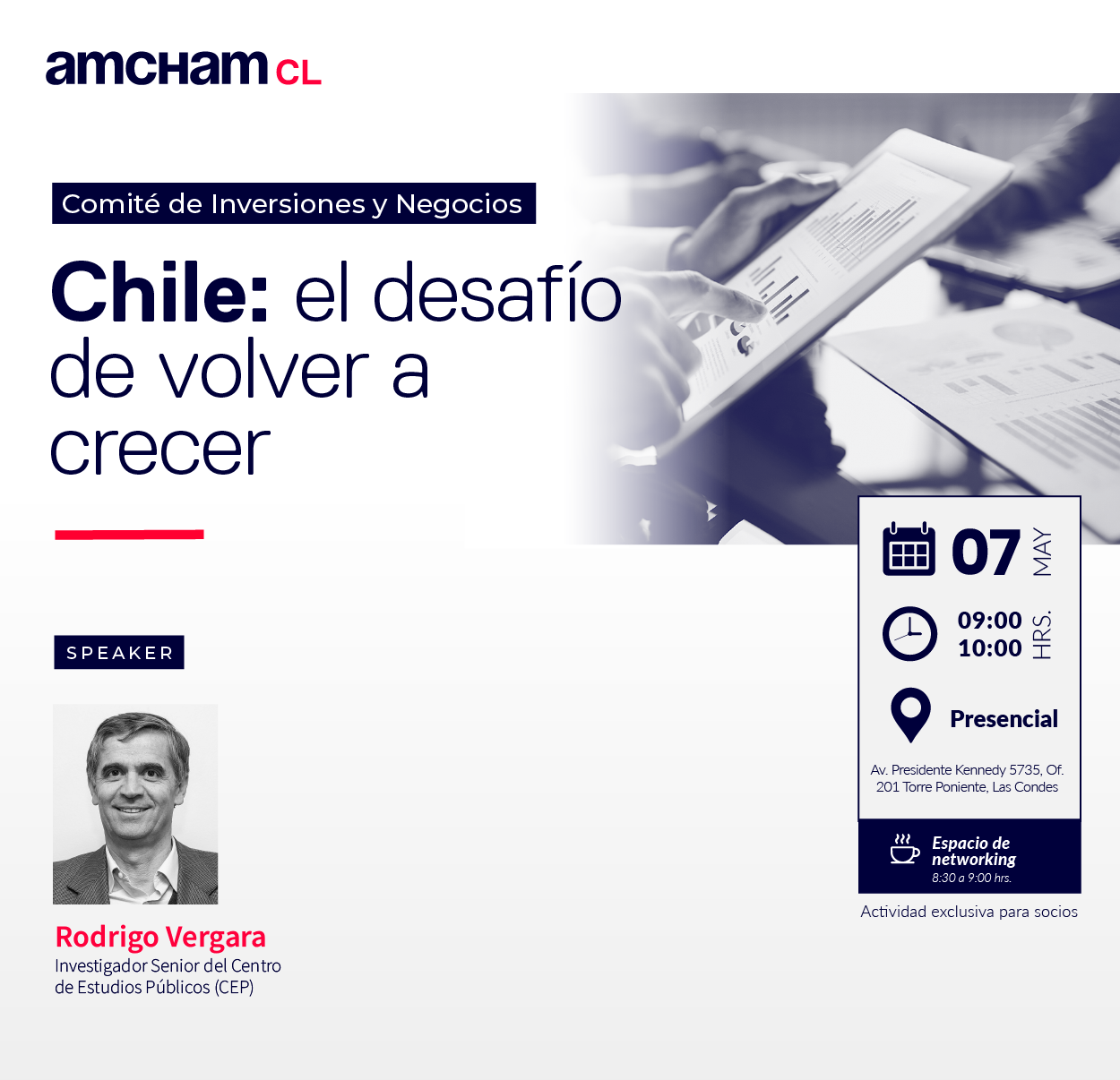 El Comité de Inversiones y Negocios de AmCham Chile, te invita a participar del conversatorio “Chile: El desafío de volver a crecer».