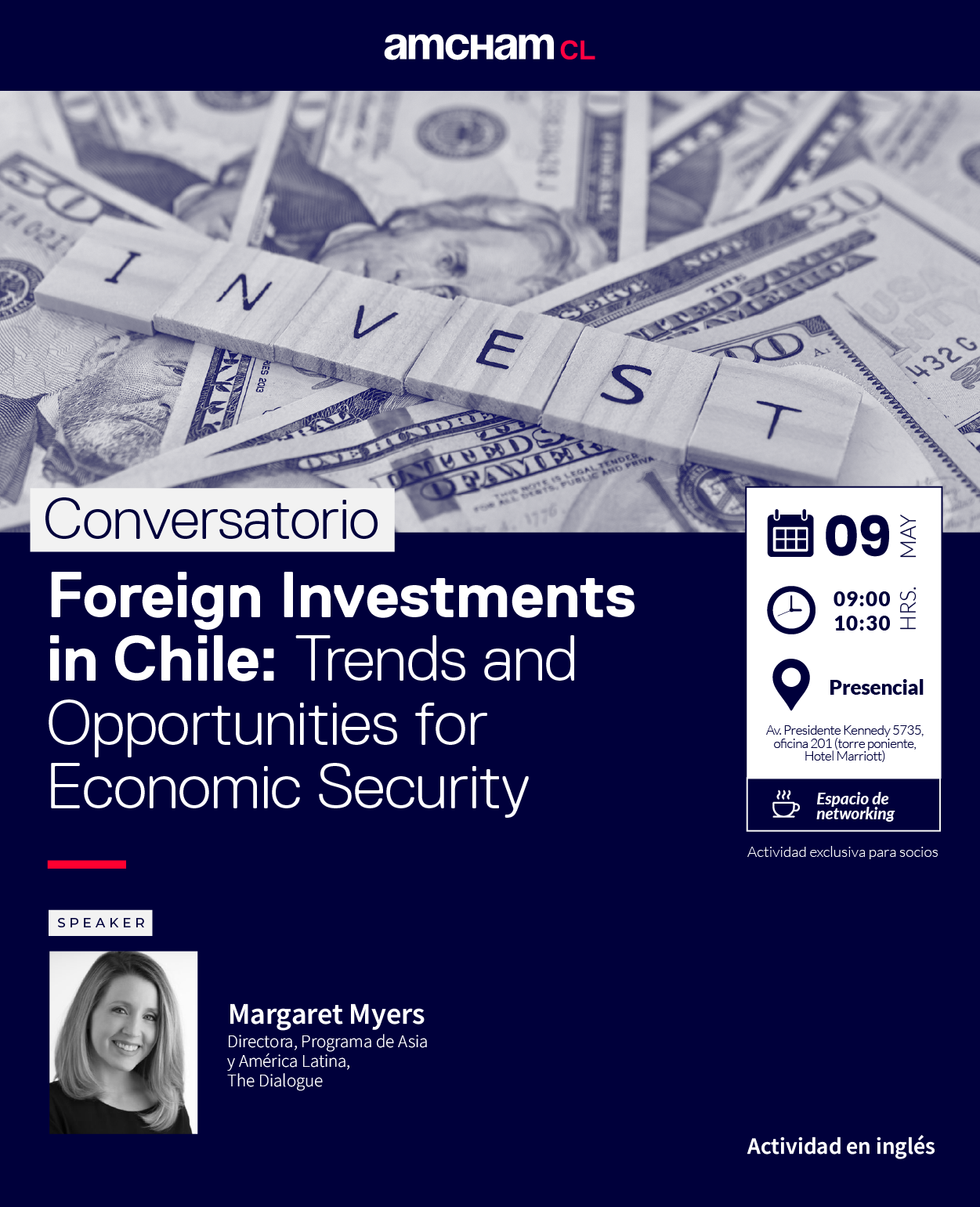 El evento se llevará a cabo en inglés el viernes 9 de mayo, entre las 09:00 y 10:30 horas, en las oficinas de AmCham Chile.