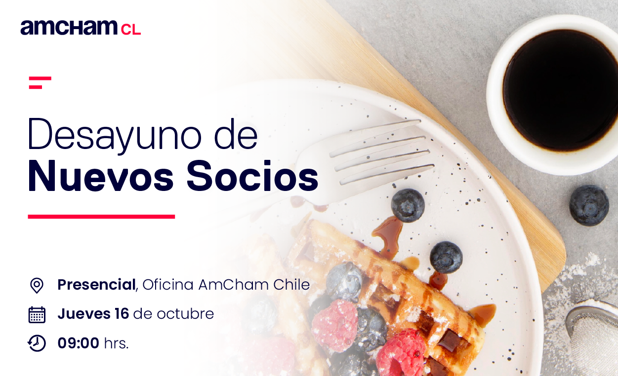 La Cámara Chilena Norteamericana de Comercio, AmCham Chile, realizará un desayuno de bienvenida para nuevos socios junto a Roberta Valenca, presidenta de AmCham Chile, y miembros del Directorio.