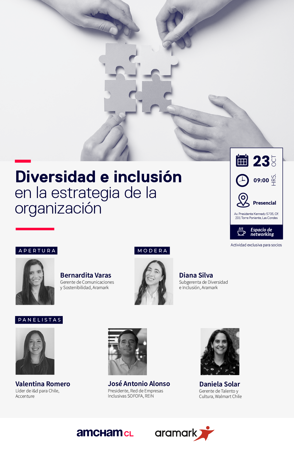 Aramark, socio auspiciador de AmCham Chile, te invita a participar del conversatorio «Diversidad e inclusión en la estrategia de la organización» el día miércoles 23 de octubre a las 9:00hrs. en las oficinas de AmCham Chile.