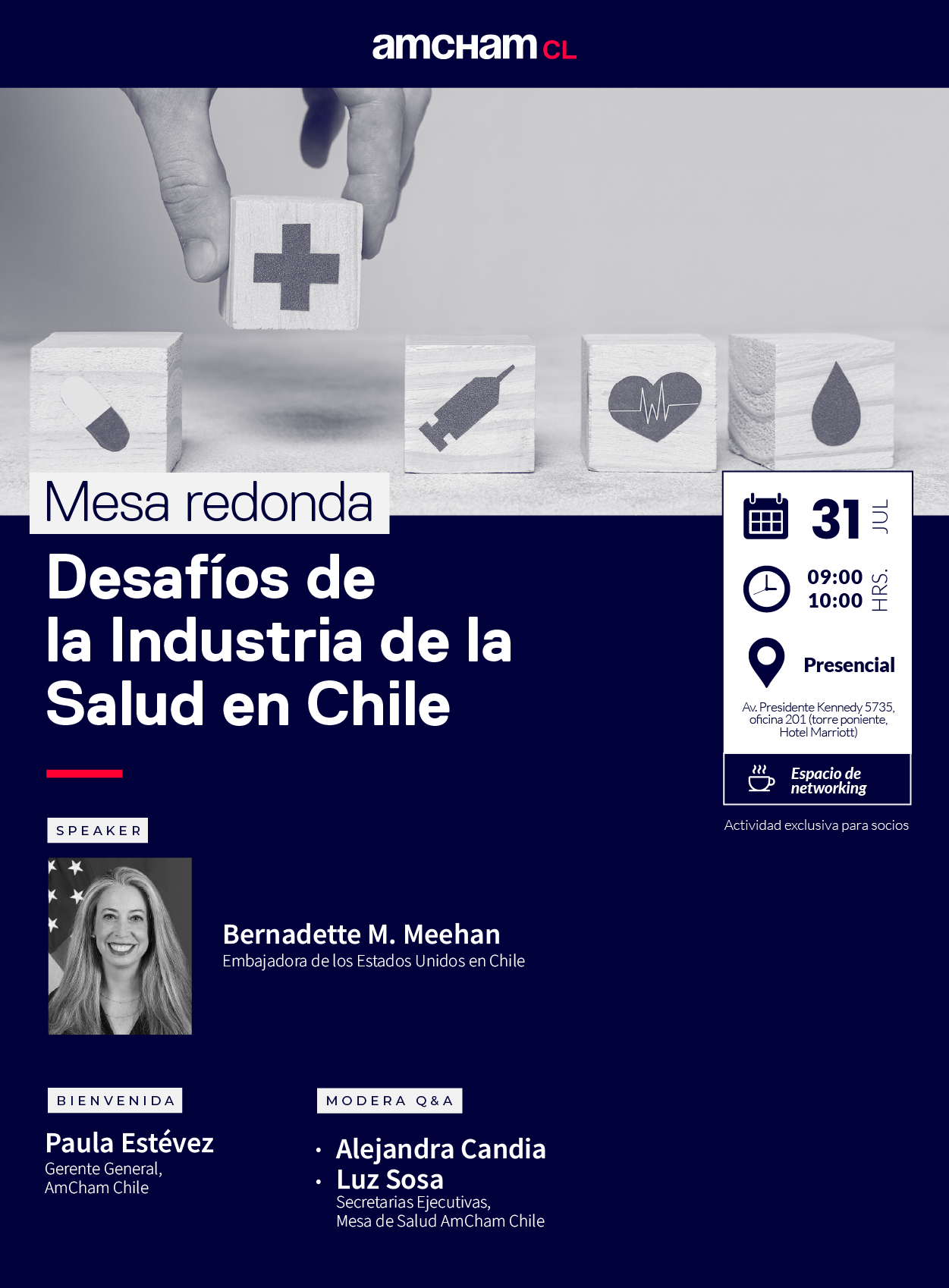 AmCham Chile y su Mesa de Salud te invitan a participar en la Mesa Redonda «Desafíos de la Industria de la Salud en Chile» con la Embajadora de Estados Unidos en Chile, Bernadette M. Meehan.